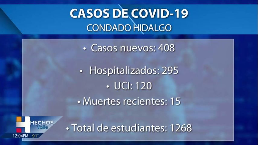 En todos los distritos escolares del condado Hidalgo, se informaron ocho nuevas infecciones positivas entre el personal y se informaron 50 nuevas infecciones entre los estudiantes. Esto eleva el recuento total a 389 infecciones totales del personal y 1,268 infecciones totales de estudiantes desde que el condado comenzó a informar infecciones escolares el 18 de agosto.
