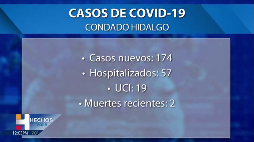 El condado Hidalgo informó el lunes de dos muertes relacionadas con el coronavirus y 174 nuevos casos positivos de COVID-19, según un informe del Departamento de Salud y Servicios Humanos del condado Hidalgo.