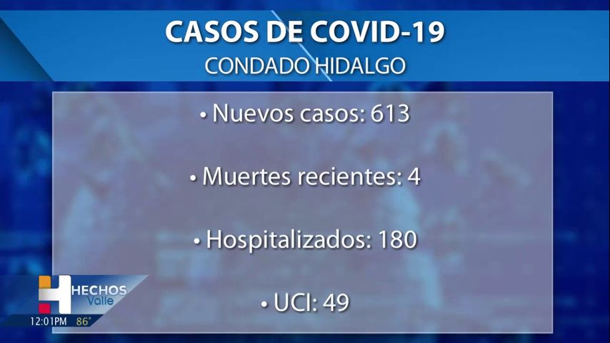 El condado Hidalgo informó el jueves sobre cuatro muertes relacionadas con el coronavirus y 613 casos positivos de COVID-19.