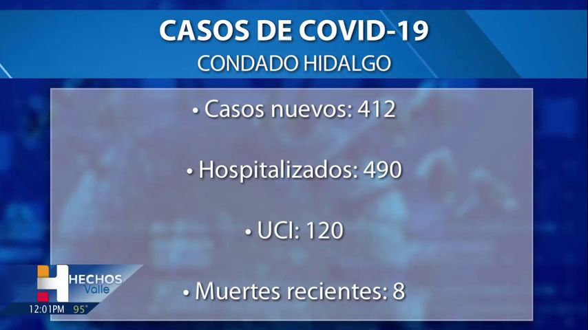 Según el informe publicado el miércoles, actualmente hay 490 pacientes con COVID-19 en los hospitales del condado Hidalgo. De esos casos, 425 son adultos y 65 son pediátricos.