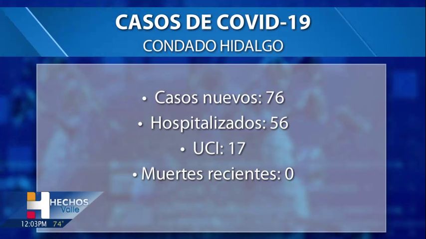El condado Hidalgo reporta 76 nuevos casos positivos de COVID-19