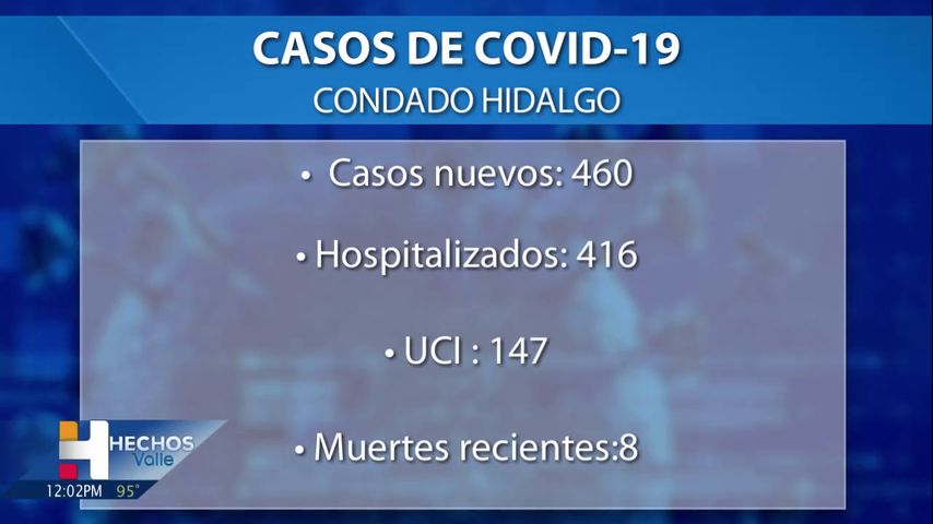 El condado Hidalgo informó el miércoles ocho muertes relacionadas con el coronavirus y 460 casos positivos de COVID-19.
