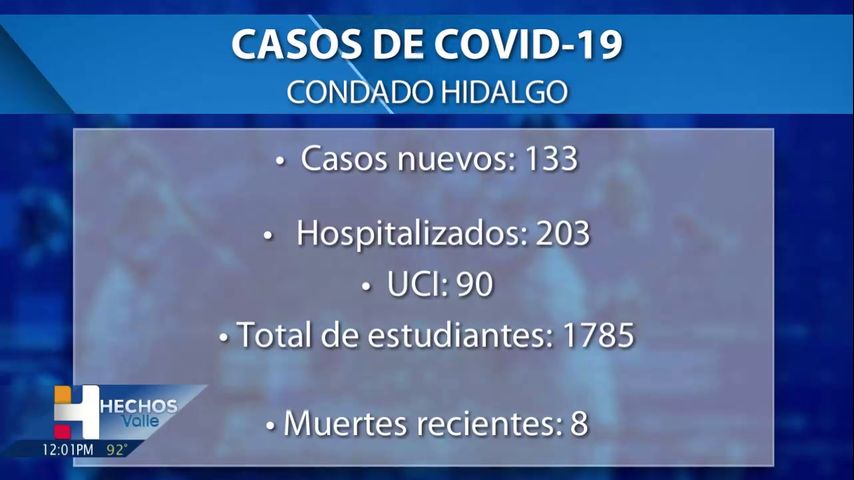 De los 133 nuevos casos de COVID-19 reportados en el condado de Hidalgo, 35 se encuentran en niños de 0 a 11 años.