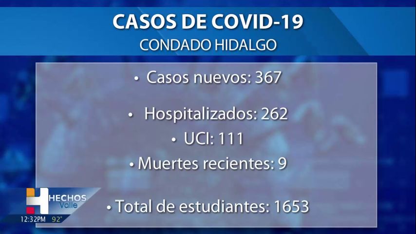 En todos los distritos escolares del condado Hidalgo, se informó que un miembro del personal y 20 estudiantes dieron positivo por COVID-19 el lunes. El condado no revela en qué campus se produjeron las infecciones positivas.