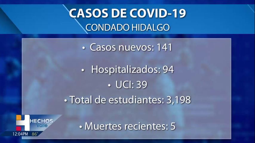 El condado Hidalgo informó el viernes de cinco muertes relacionadas con el coronavirus y 141 nuevos casos positivos de COVID-19, según un informe del Departamento de Salud y Servicios Humanos del condado Hidalgo.