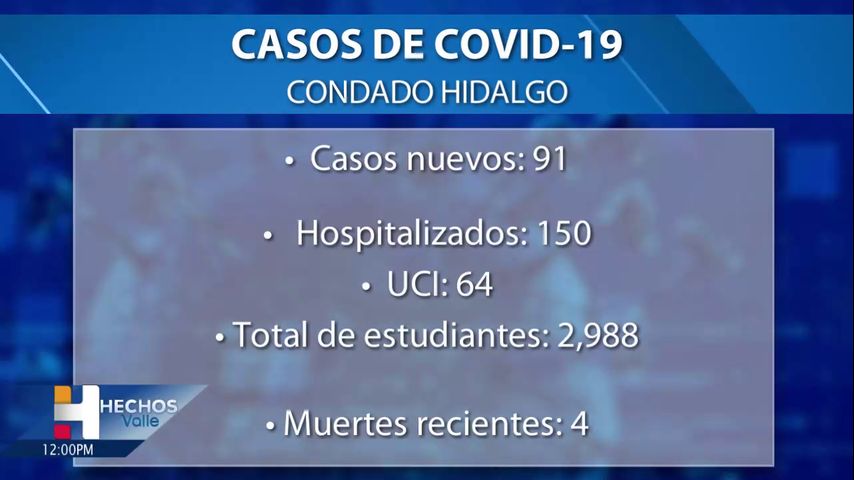El condado Hidalgo informó el martes cuatro muertes relacionadas con el coronavirus y 91 nuevos casos positivos de COVID-19, según un informe del Departamento de Salud y Servicios Humanos del condado Hidalgo.