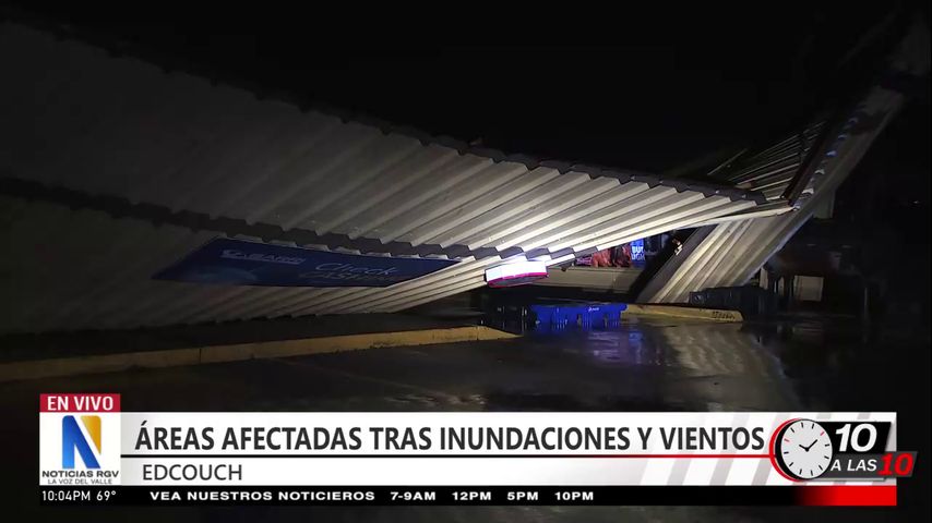 También menciona la posibilidad de granizo. De momento lo que podemos ver es que las lluvias acá en Edcouch han causado algunas inundaciones y también que algunas estructuras se han visto afectadas como la de este supermercado que vemos a mis espaldas la cual según el encargado del negocio se desplomó debido al fuerte viento y lluvia que azotaron la zona alrededor de las 6 de la tarde.