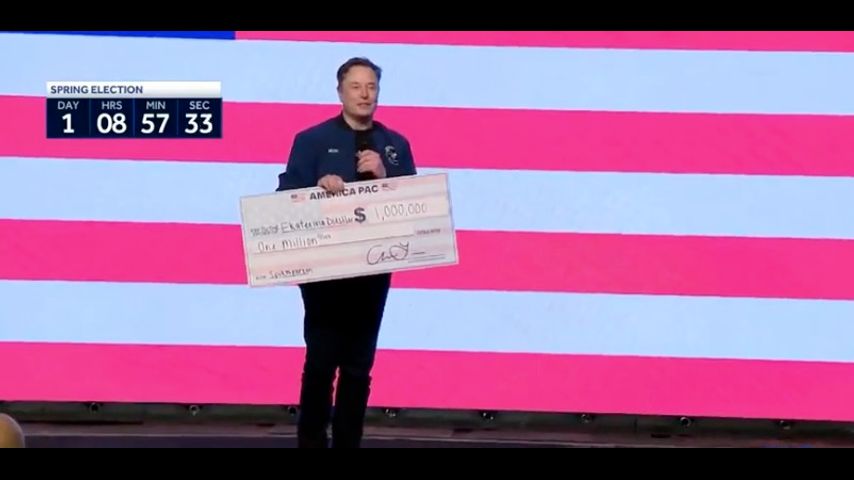 Musk handed out two $1 million checks to two people in the crowd, and he said he had signed a petition against "activist judges." He originally said the payments would be made to two Wisconsin voters, which Democrats argued violated the state's bribery laws.