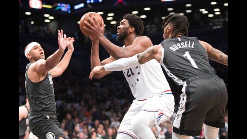 76ers: The 76ers are 5-0 on the road against the Nets in the playoffs. ... Greg Monroe, who started Game 3 and had nine points and 13 rebounds in place of Embiid, played just one minute.