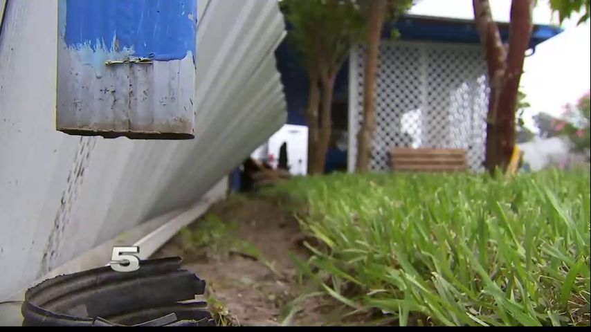 The homes sit behind a small lake. When the rain hit, the water overflowed.