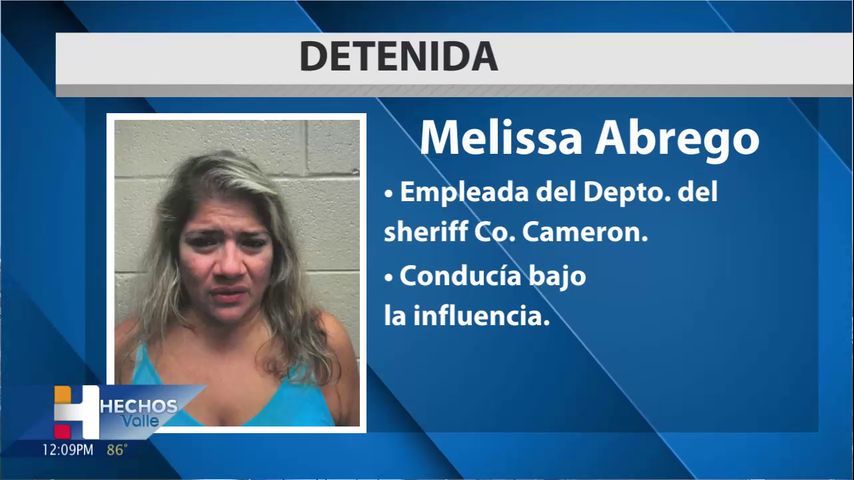 El reporte oficial establece que Melissa Ábrego, empleada del departamento del alguacil del condado Cameron de 42 años de edad fue detenida, cuando conducía por la carretera Interestatal 100 a la altura de la ciudad de Laguna