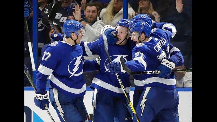NOTES: Chicago senior adviser Scotty Bowman, who coached the Stanley Cup champion Canadiens in 1976-77, was at the game. ... Kucherov has three goals and eight assists over his last three games. ... Agostino halted a 17-game goal drought. ... Tampa Bay D Mikhail Sergachev played after he was hit on the left knee by a shot Thursday. ... Stralman got his first goal in 16 games.