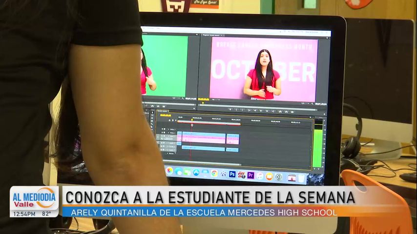 Ante una cámara de televisión de la preparatoria Mercedes HS, está Arely Quintanilla, sin inhibiciones y con seguridad, está practicando para grabar un servicio público para la escuela en la campaña contra el Cáncer de mamá.