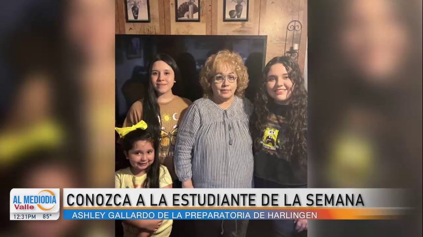 Ashley Gallardo, de 18 años de edad, nos deja muy claro lo que su familia ha significado en su búsqueda por destacarse como una gran alumna. Ashley está en el último grado de la preparatoria de Harlingen. Cuenta con un promedio de 4.3 formando parte entre los diez estudiantes más destacados de su escuela. Añade que haber sido nombrada la estudiante de la semana es el fruto de su empeño diario a sus estudios