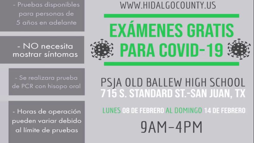 El condado Hidalgo estará ofreciendo pruebas gratis en diferentes ubicaciones empezando este viernes.