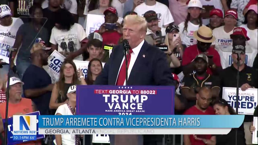 Expresidente Donald Trump critica a Kamala Harris en mitin en Georgia