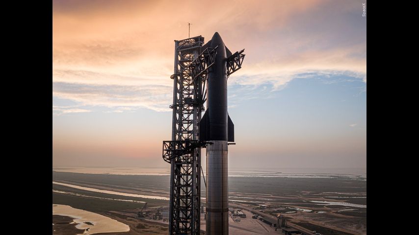 He also has posted pictures of the rocket fully stacked and ready on the launchpad, which lies due east of Brownsville, Texas, on the state’s southernmost tip.