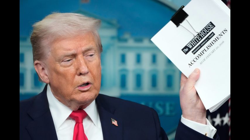 FACT FOCUS: Trump highlights familiar false claims as he reviews his first year back in office