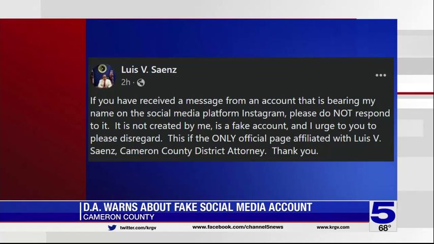 Cameron County District Attorney Luis Saenz says there’s a scam Instagram account that’s impersonating the public official.