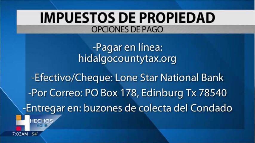 También puede pagar con efectivo o cheque en todas las localidades de Lone star National Bank en el condado Hidalgo.