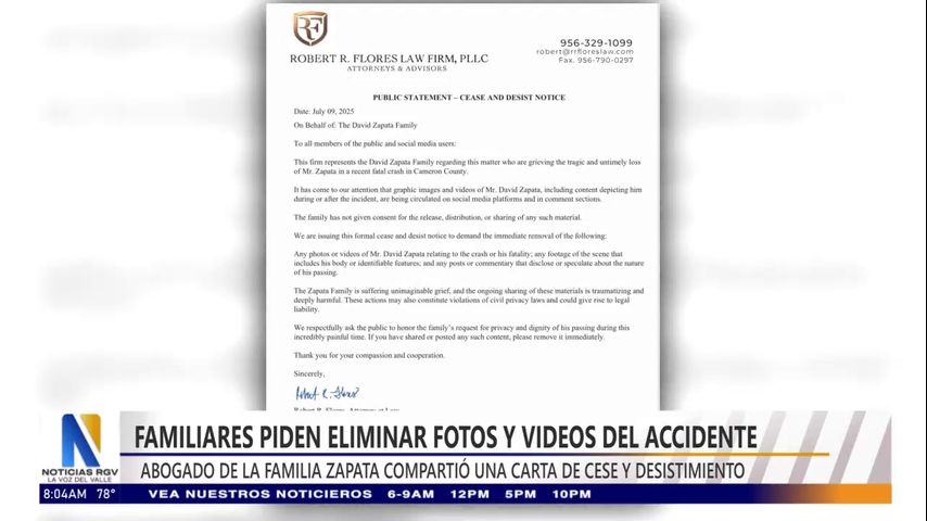 “La familia dice: 'No, no van a usar a nuestro familiar, quien falleció de forma tan horrible, para su propio beneficio'”, declaró el abogado Robert Flores a Noticias RGV.