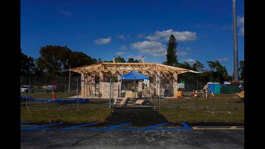 Plywood sheets and cedar beams were piled everywhere as the building took shape, meeting Florida's stringent hurricane code even though it will be burned before the storm season starts. Most construction materials and other expenses are being paid by former New York Mayor Michael Bloomberg's public arts foundation, but neither Best nor his workers are paid.