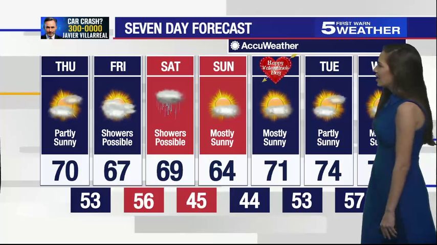 Feb. 10, 2022: Partly sunny, temperatures in the 70s