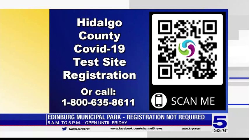 The FEMA COVID-19 testing site at the Edinburg Municipal Park will be open from 8 a.m. to 6 p.m. until Friday, Feb. 4. For more information and registration, call 1-800-635-8611 or click here to register online.