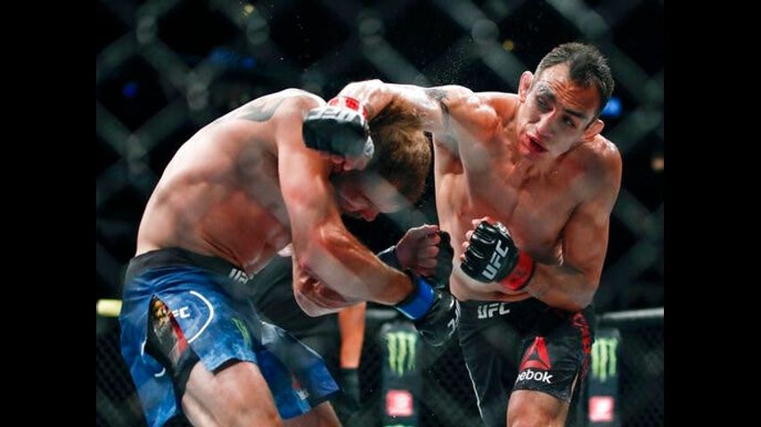 CHICAGO (AP) - Tony Ferguson won by technical knockout after a medical stoppage in a lightweight fight against Donald Cerrone at UFC 238 on Saturday night.
