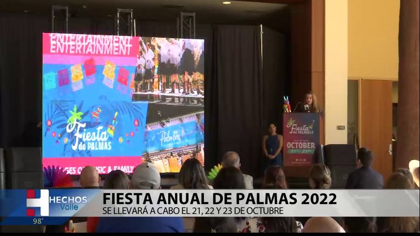 La ciudad de Mcallen llevará a cabo la edición número 16 de la Fiesta Anual de Palmas 2022 la cual está programada para el próximo 21, 22 y 23 de octubre en el centro de convenciones de Mcallen. Contará con una gran variedad de eventos en vivo, juegos mecánicos, comida y actividades interactivas para los niños.