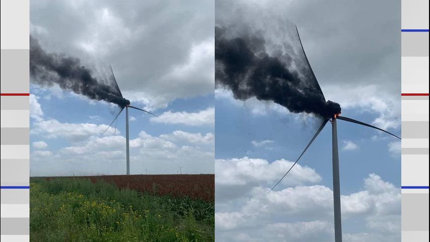 Fire departments responded to a wind turbine fire in Lyford Monday afternoon, according to the Willacy County Sheriff's Office.
