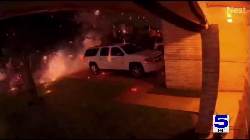 Footage from the doorbell camera shows a car driving by Garcia’s house before a firework is set off near his car.