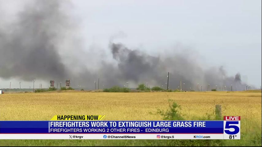 Firefighters are working to put out a large grass fire near Edinburg, according to city spokeswoman Roxanne Lerma.