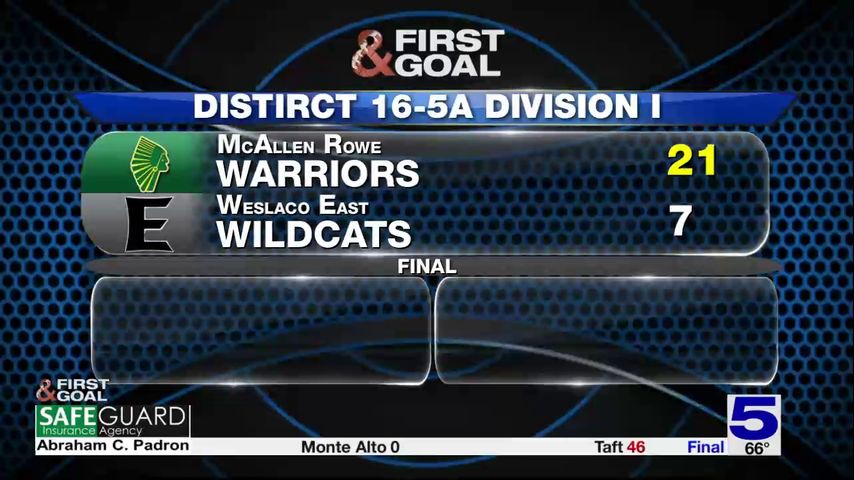 | Weslaco East | 7 | McAllen Rowe | 21 | FINAL |