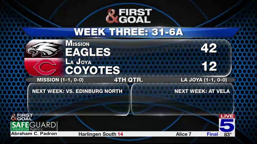 | Mission HS | 42 | La Joya High | 20 | 7:30 p.m. |