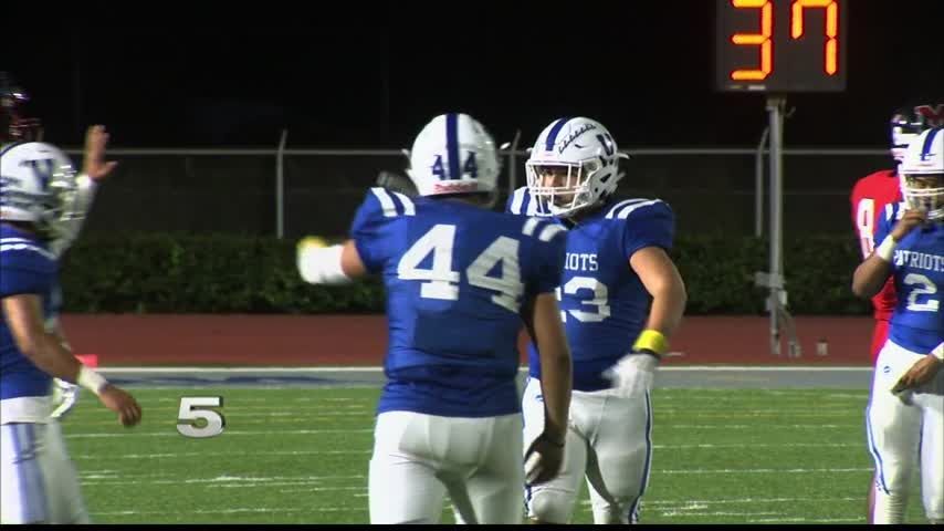 MISSION - The Valley's two Veterans Memorial high schools played a rescheduled game from Friday night at Tom Landry Stadium in Mission on Saturday. The Patriots from Mission throttled the Chargers from Brownsville to move to 2-and-0 in district play. Also on Saturday, Rio Grande City downed Lopez 26-21 and Palmview defeated Porter 35-27. CHANNEL 5's Ruben Juarez has the highlights.