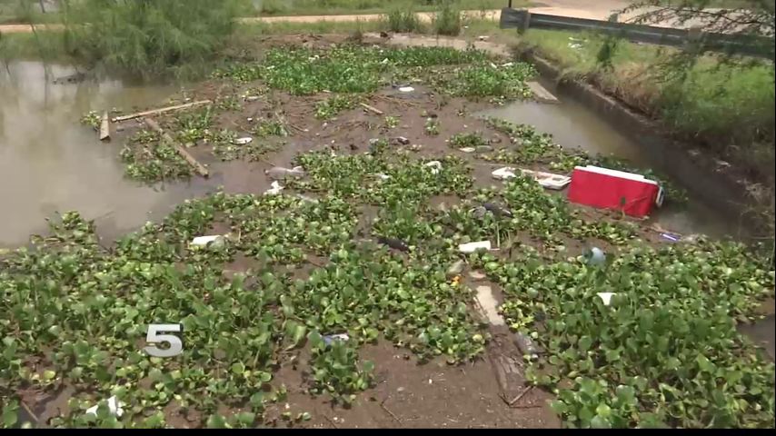Right across the street, a neighborhood surrounded by floodwaters from Monday’s storms.