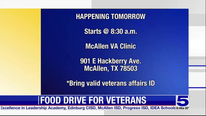 A food drive for Rio Grande Valley veterans is scheduled for Thursday at the McAllen Veterans Affairs Clinic.