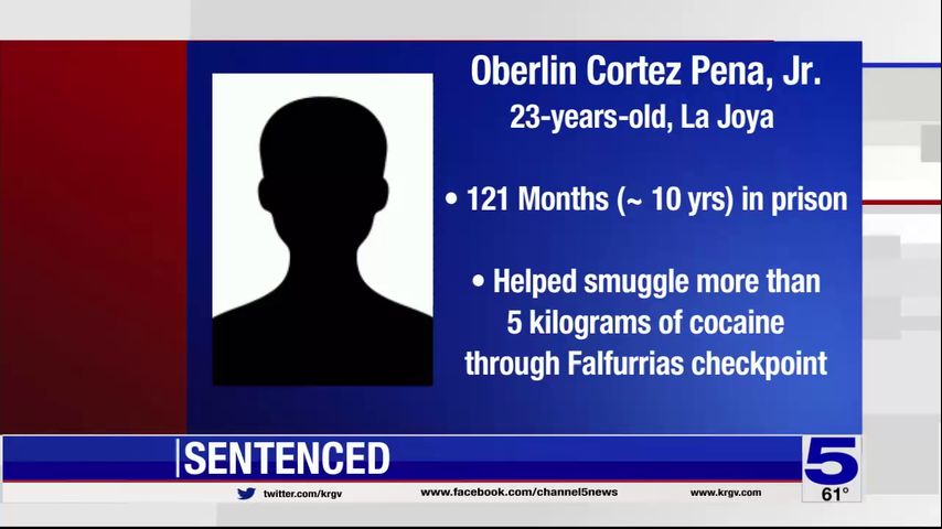 Peña admitted to helping smuggle more than five kilograms of cocaine through the Falfurrias checkpoint on two separate occasions, the news release from the U.S. Attorney General’s Office stated.