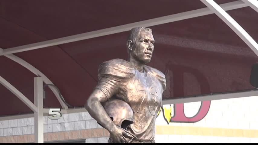 Evans was an outstanding football and basketball player at Donna. And now his likeness will forever stand in front of the stadium. A statue of Evans was unveiled at the ceremony.