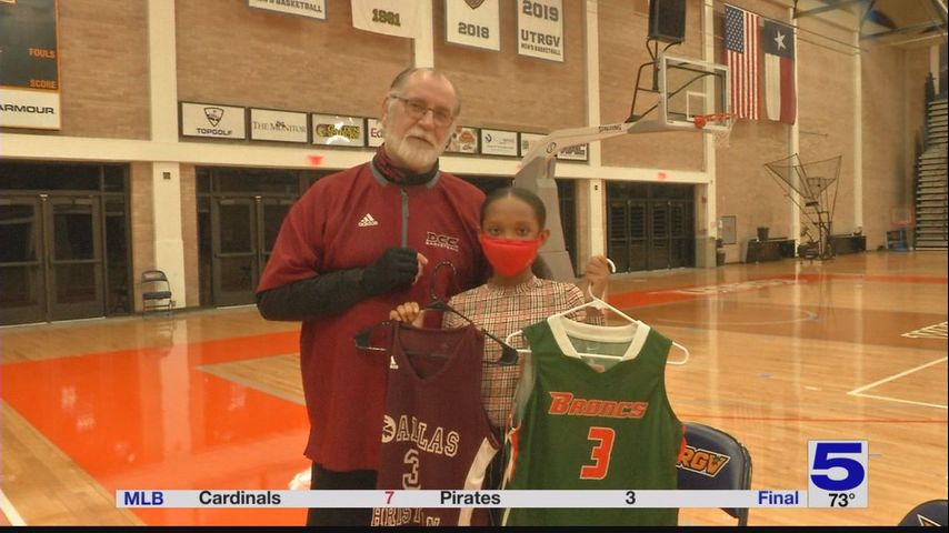Tidwell also came with another jersey and an offer. Tidwell said he was "actively recruiting" Sweets Hill for the class of 2027 for Dallas Christian College. Tidwell then presented her with her very own jersey for Dallas Christian also with her late father's No. 3 on it.