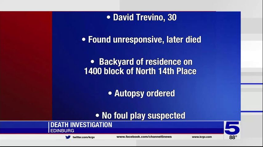 Officers discovered the body of 30-year-old David Trevino on the ground in the backyard of the residence. He was pronounced dead by a justice of the peace.