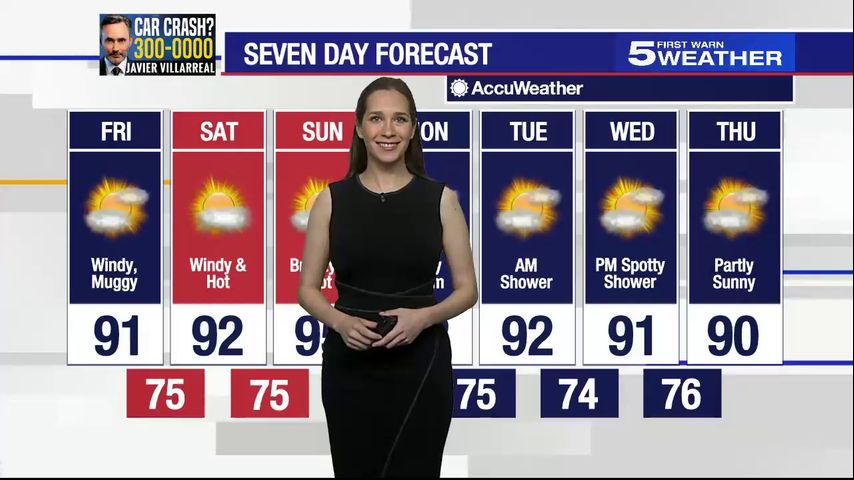 Friday, April 26, 2024: Windy and muggy with temperatures in the low 90s