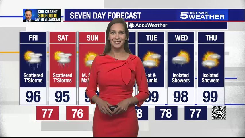 Friday, Aug. 25, 2023: Scattered thunderstorms, temperatures in the high 90s