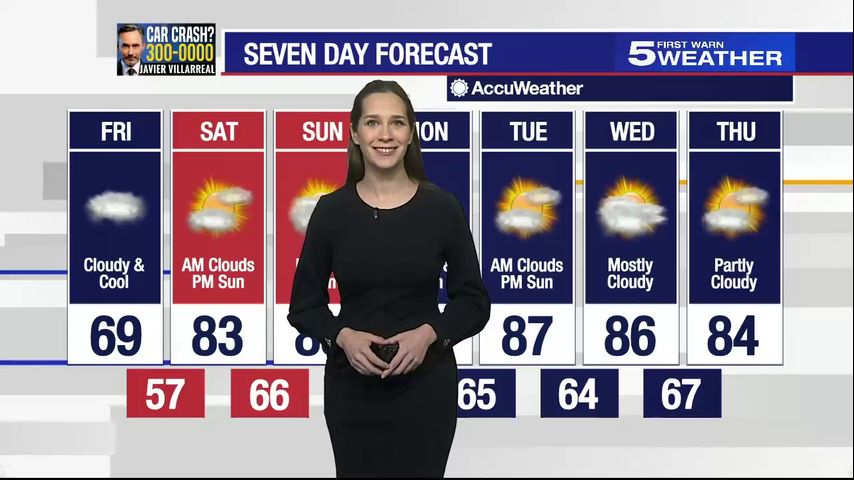 Friday, March 1: Cloudy and cool with temperatures in the 60s