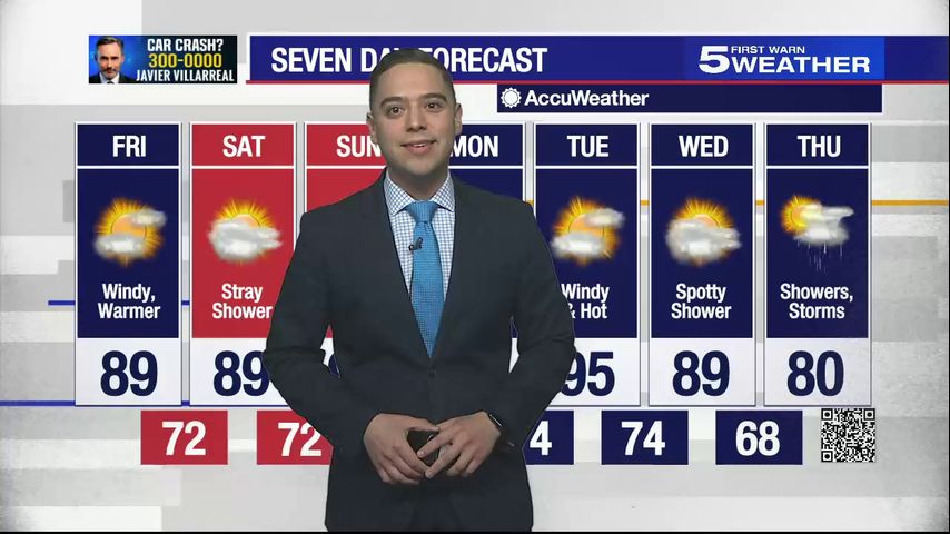 Friday, March 31, 2023: Windy and warmer with temperatures in the high 80s