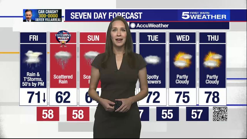 Friday, Nov. 10, 2023: Falling temperatures with rain and thunderstorms