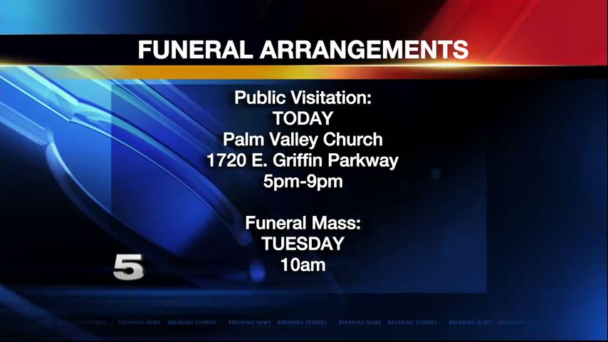 The funeral service is scheduled for Tuesday morning at 10 a.m. at Palm Valley Church.