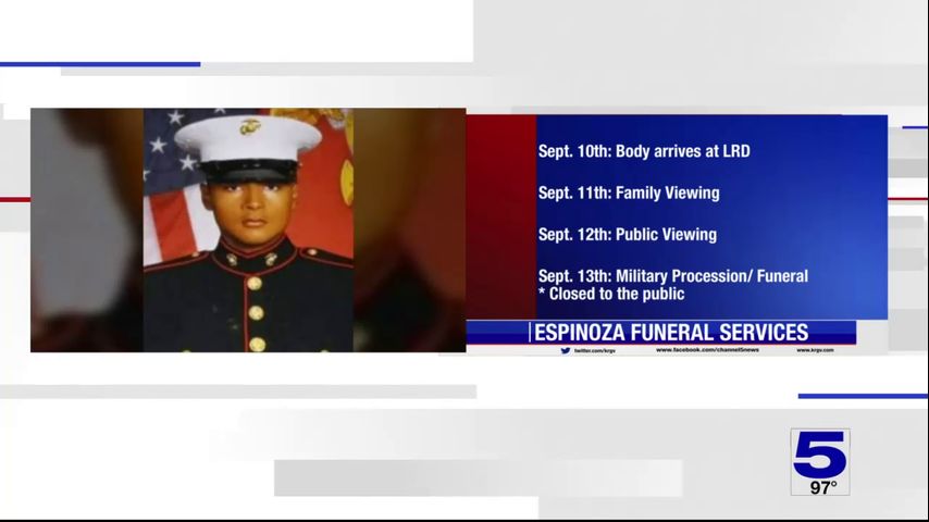 The body of Lance Corporal David Lee Espinoza is scheduled to arrive at the Laredo airport on Friday, Sept. 10.