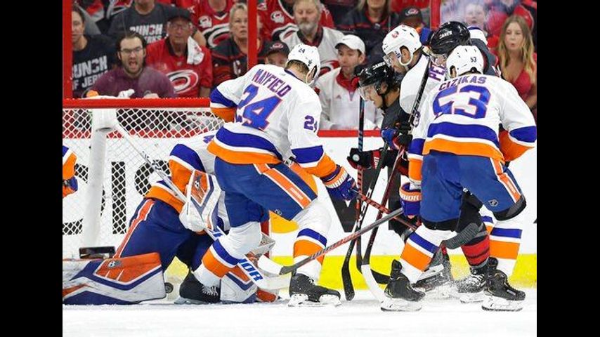 RALEIGH, N.C. (AP) - The New York Islanders pulled starting goalie Robin Lehner in the second period of Game 4 of their second-round series with the Carolina Hurricanes on Friday night.